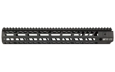 A modern 14.8″ M-LOK handguard with 45 degree mounting offsets and an internal diameter of 1.7″ to accept most sound suppressors.