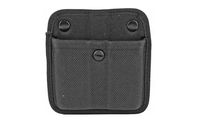 The Model 7320 AccuMold Triple Threat II Double Magazine Pouch is an open top design and features an injection molded belt loop for vertical or horizontal carry. Made with trilaminate construction with Coptex knit lining and fits 2.25 in. (58 mm) duty belts. Features an adjustable tension screw.
