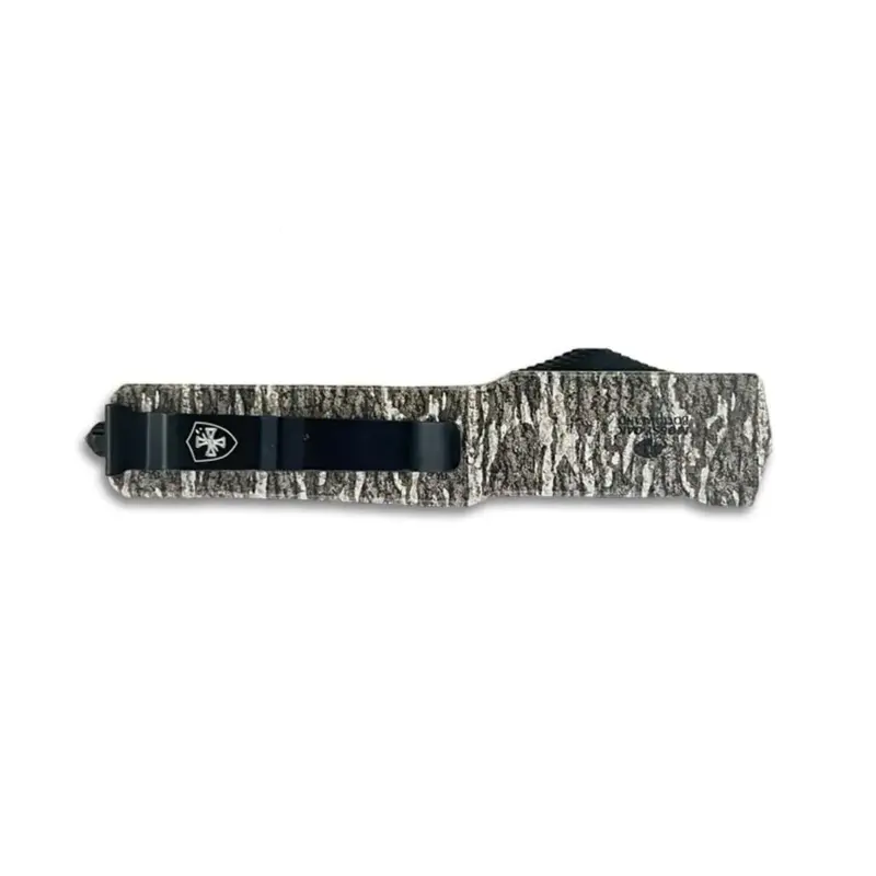 Inspired by the look of classic Italian stilettos the Kershaw Launch 8 modernizes this traditional design for a new generation. The Launch 8 has the symmetrical lines of a stiletto is very lightweight—only 2.4 ounces—and easy-to-carry. The slim blade is sharpened on one side and has a deep top grind to lighten weight and add stiletto style. To maintain the symmetry the pivot is sunk deep in the handle and covered by a carbon fiber insert. Integrated fingerguards on handle top and bottom keep fingers away from danger.