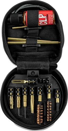Covers 380 Auto 9mm Luger 38 Special 357 Magnum 40 S&W 45 ACP and 45 Colt calibers. The handle features a rotating attachment point for the rod which allows the rod to rotate and follow the rifling in your barrel. All the components are packed in a convenient plastic carrying case.