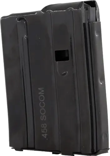 A 25-rd magazine for the AR-15 9mm SMG configuration carbine. The magazine body is constructed of heat-treated steel and finished in a black-phosphate. The follower is constructed of a proprietary DuPont Zytel based polymer to ensure a long service life. The springs are made from heat treated Chrome-silicon wire for increased reliability and smooth feeding. Made in the U.S.A.