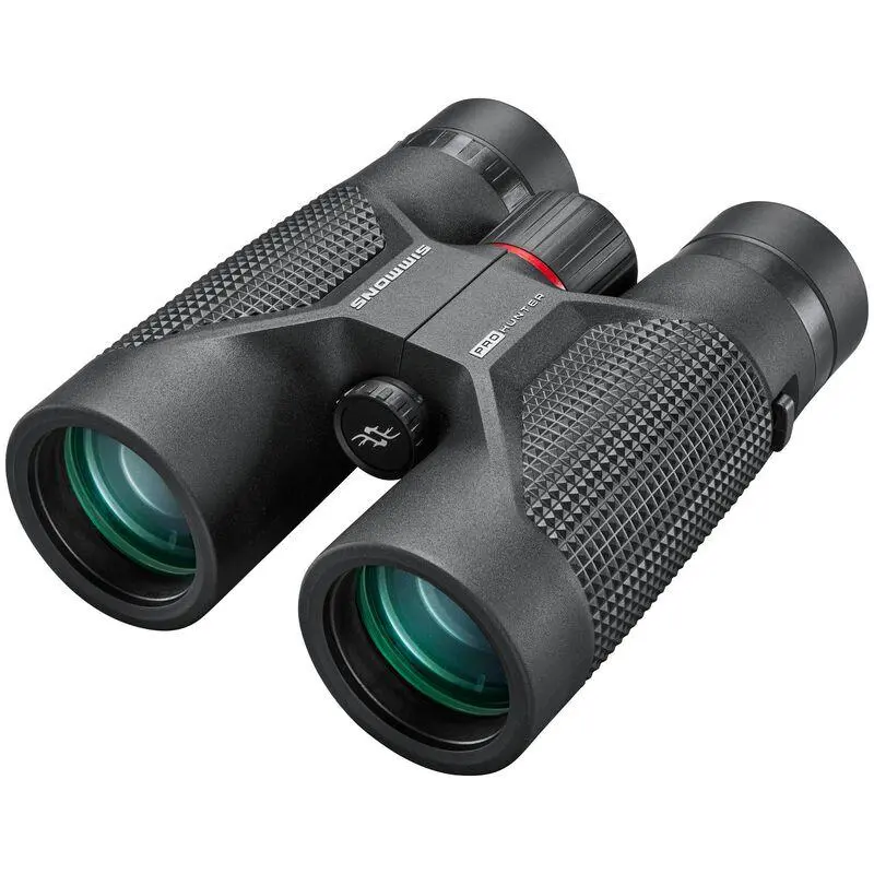The Simmons Pro Hunter Binoculars are built with an all-glass optical system providing crisp images in low lighting conditions with fully coated lenses and IPX7 waterproof and fog-proof construction giving you peace of mind in the outdoors. An aggressive rugged design with textured grip zones keep these binoculars securely in your hands. The Pro Hunter binoculars also feature a tripod adapter lug and include a convenient soft-sided carry case neoprene neck strap rubber lens covers and lens cleaning cloth.