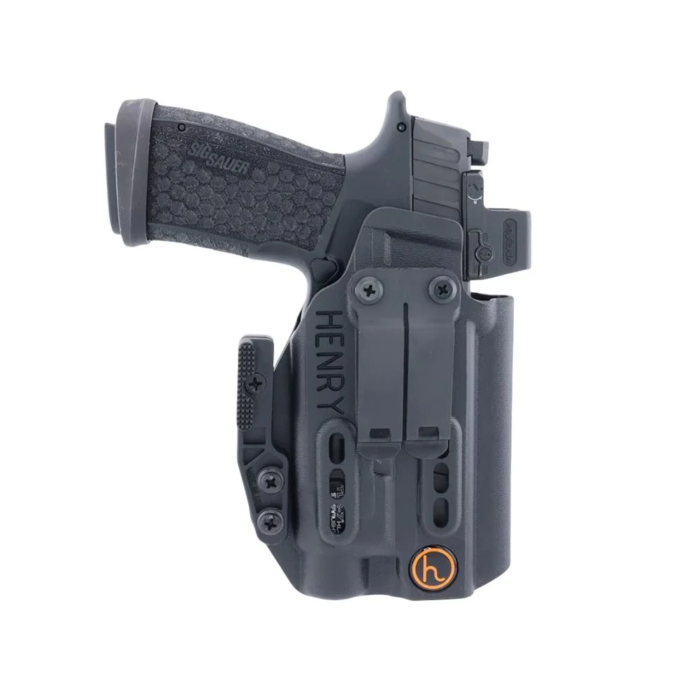 Reinforced thumb break for positive snap release. Rides at a forward angle. Double-stitching for added durability. Open muzzle design. Two piece construction with front molding and backside body. Molded for a secure fit. Covered snap to prevent the gun from scratching. Leather lined to protect your guns finish. Fits belt up to 1